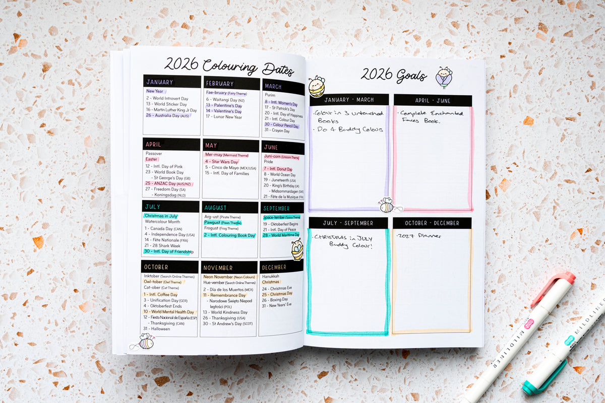 The 2026 Colouring Planner is your all-in-one colouring bestie to track projects, log supplies, stay organised, and get inspired.
