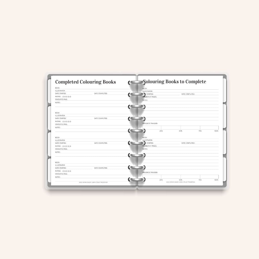 Colouring Book & Project Tracker – Printable Page Pack (11 Pages)